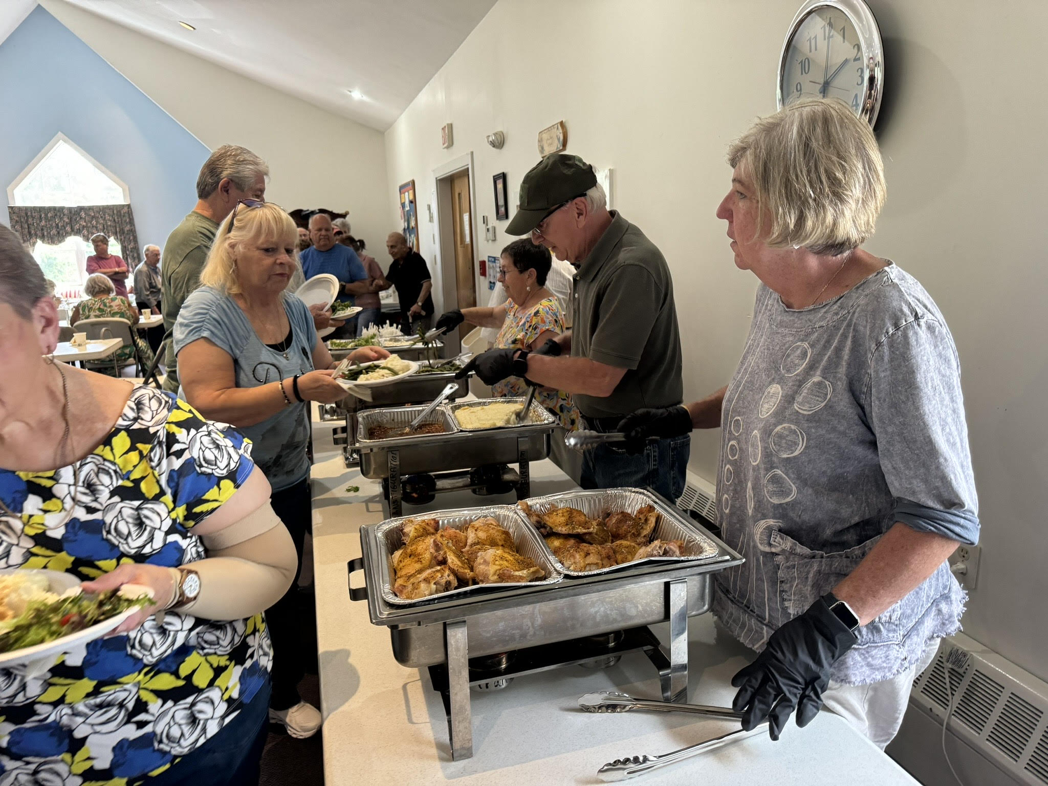 On Sunday, August 11th members from both Transfiguration and Etz Hayim prepared and served, approximately 50 community members, a free chicken dinner with all the “fixins”. Hannaford in Derry, graciously provides breads and desserts for all to enjoy. This free meal is on the second Sunday of the month from 2:00 PM- 3:00 PM.